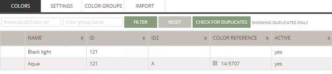 - You will receive a list of any colors that have duplicate IDs, and you can edit them so that there are no longer duplicates.