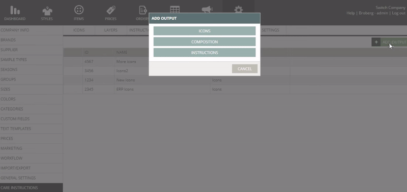 After setting up your care instructions, you can customise how they appear when exporting data through a Style Custom Report or a Custom Export. Firstly, the Style Custom Report option lets you generate reports and export them to Excel, providing detailed care instructions for manufacturers and suppliers or it can, for example, help verify compliance with industry standards. Secondly, the Custom Export allows you to transfer care instruction data to other systems through an integration, ensuring seamless data exchange and compatibility with your existing workflows.