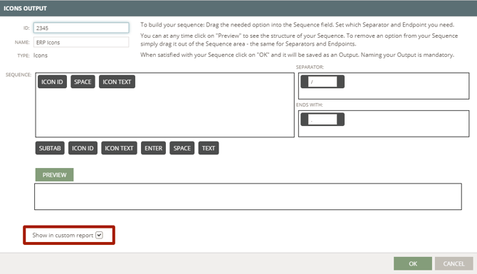 - When setting up an Output in any pop-up, on the bottom of the window you will see an option to include it in the Style Custom Report