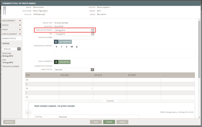 If you want to change the deadline or any other dates quickly and without adding a comment, you can do so directly from the Sample Request card.