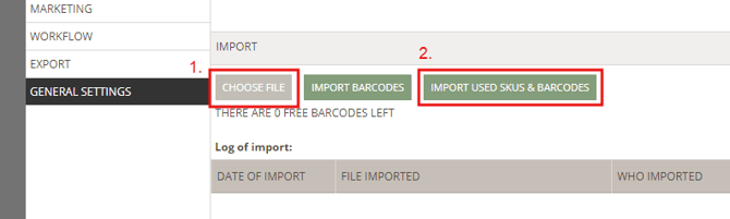 - Select the file on your computer and click 'Import used SKUs & Barcodes' button