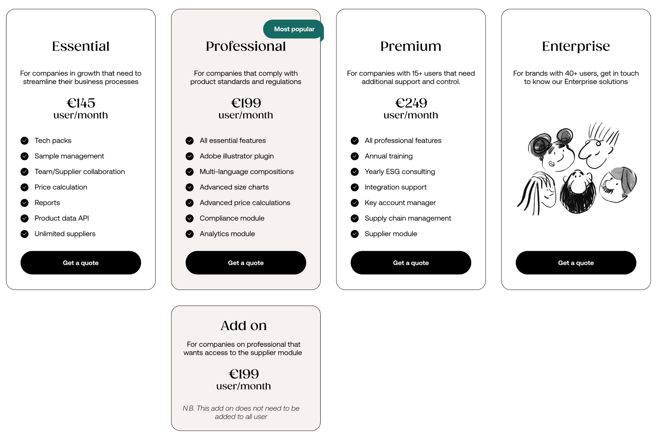 The supplier module will have license fee of 199/per user/month. It will not be possible to add this to the Essential plan - only to the Professional Plan. A brand can choose how many users they need, as this is not necessarily everyone in a company.