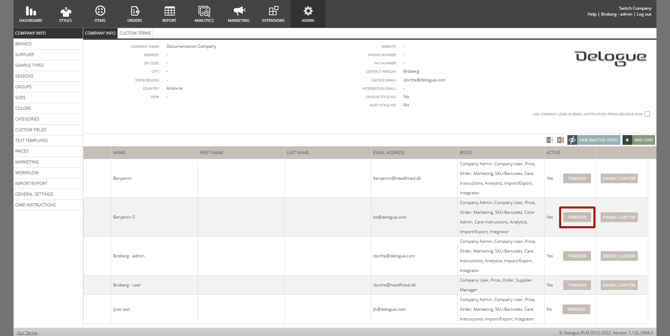 If your colleague is responsible for managing any styles, items, or tasks but is unavailable due to prolonged absence or leaving the company, you can transfer these responsibilities to another colleague within your organisation. This feature can be very useful in ensuring that important tasks are not missed or delayed. Another scenario could be that you need to change the email address of an existing user.