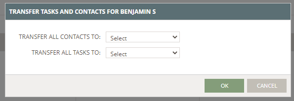 - You transfer all tasks and/or all contacts - it is not possible to select which one you transfer