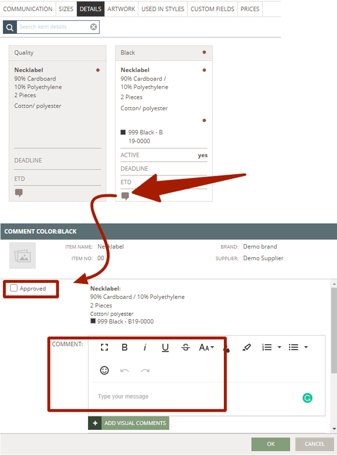 - Color approval - can be updated with Approved/Not approved