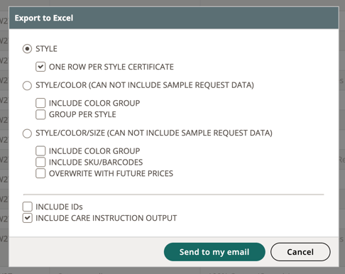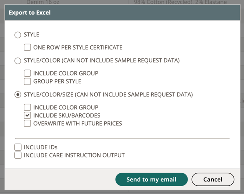Depending on your retailer’s request, you will have to export your Style Custom Report twice. Use the table below to see which options to select each time. In case your retailer asks for something not covered in the table, see the full list of export options here.