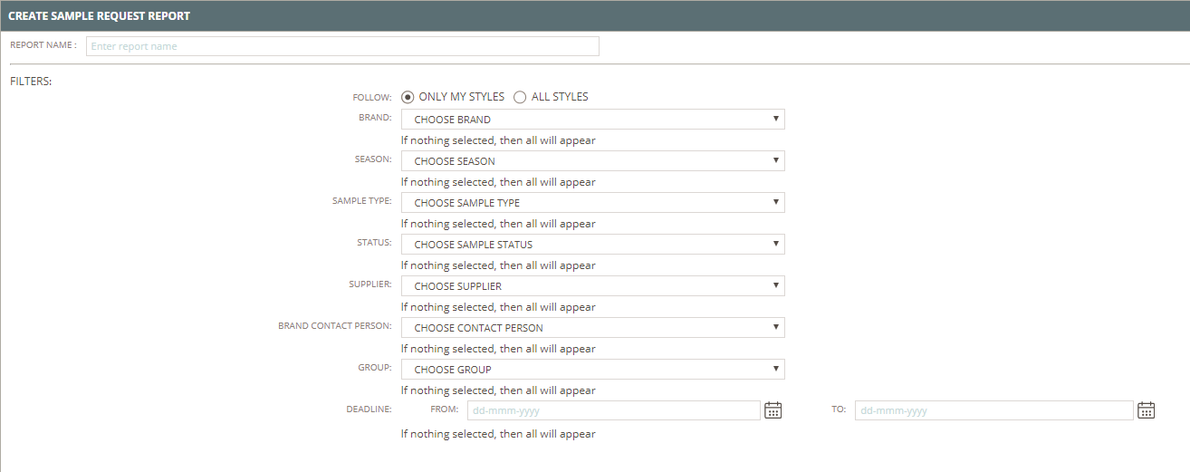 5) Decide if you want the report to show all style samples or only to show sample requests on styles where you are the contact person or following the style.