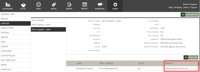 - You can check which brands your supplier user has access to in Admin > Supplier