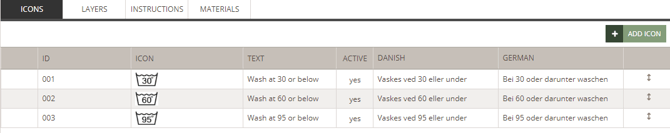 To find translations of icons, layers, instructions, and materials, use the 'Care Instruction Import Template' as a reference. This template can be used when importing care instructions into your Delogue platform. You can copy and paste information directly into the Excel file downloaded from Admin > Care Instructions > Import. To find out more about the Care Instruction Import function, read here.