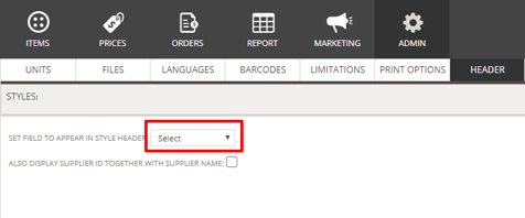 - Select which field to appear as an extra field in the style header, next to 'Set field to appear in style header'