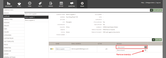 - Click the 'cross' icon to remove the brand assigned to the supplier