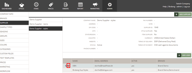 After you have added the supplier company in Admin, you can add users to the supplier company. Adding users is necessary for the supplier to be able to access and view styles assigned to them.