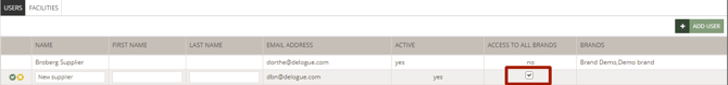 - Set a checkmark under 'access to all brands' - to allow the supplier access to all your brands
