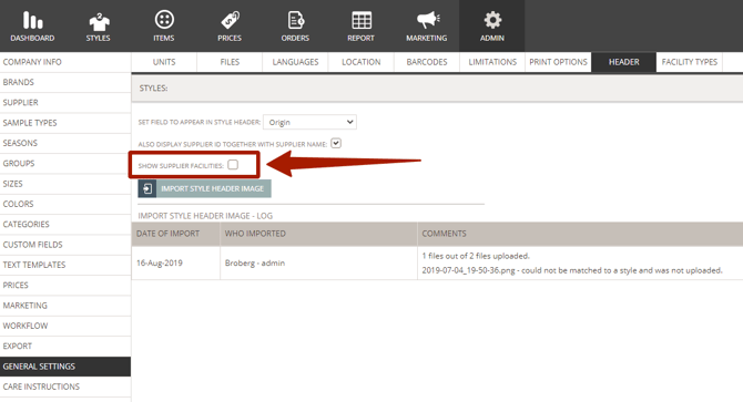 This article explains how to activate the supplier facility feature, making supplier facilities visible on Style level
