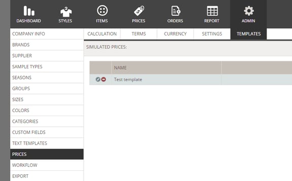 The Simulate Price feature allows you to create price templates in Admin, so you can easily test and calculate different costs and alternatives for your styles. This means that each template created can be a proposal or a quote.