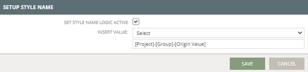 3. Once the generator is activated, a drop-down field will appear. In the 'Insert Value' drop-down you can select the values you want to include in the logic of your Style Name.