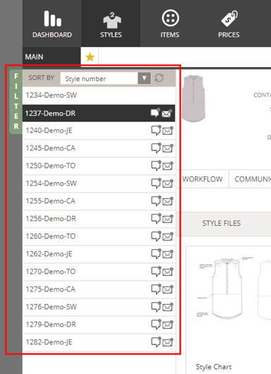 Whenever you need to send a message to your customer, select the project/style and go to the Communication subtab.