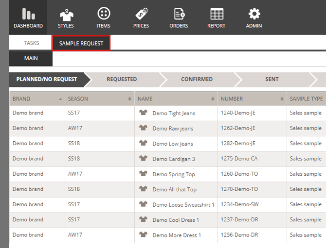 In the Dashboard, under the Sample Request tab, you have an overview of all the projects you are the contact person for and all the sample requests your customer has made.