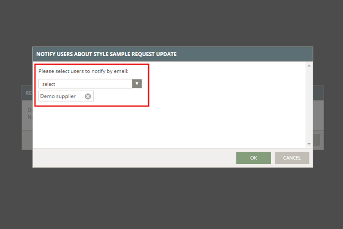 4. Select if you want to notify someone about this change by email. The supplier contact person is selected by default but can be removed.
